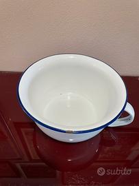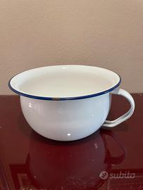 Antico vaso da notte in ottime condizioni, presenta piccole scheggiature sulla smaltatura sul fondo e una poco visibiel sul bordo blu. Marcato Due Leoni