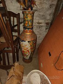 Vendo vaso cinese con motivi di fiori e uccelli usato, manca una delle orecchie gialle laterali scheggiato. Alto ben 1,50 m circa
