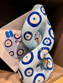 Vendo vaso decorativo davvero originale, con design intrecciato e motivo a “occhi” nei toni del blu e azzurro. È un pezzo che si fa notare subito, perfetto come oggetto d’arredo anche senza fiori. Sta benissimo in ambienti moderni o creativi. Nuovo, mai utilizzato, completo di scatolone originale. Ideale anche come regalo. Dimensioni: •Altezza: 25,5 cm •Lunghezza: 14,5 cm •Larghezza: 9 cm Prezzo: €90 Disponibile per ritiro a mano o spedizione.