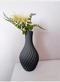 Vaso dal design contemporaneo ed elegante, caratterizzato da una forma slanciata e armoniosa con una raffinata lavorazione a spirale che avvolge tutta la superficie. Il motivo ondulato crea un piacevole gioco di luci e ombre, valorizzando l’oggetto anche come pezzo d’arredo scultoreo.