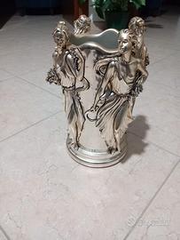 Vaso decorativo laminato in argento, peso circa 3 kg, altezza 35 cm, diametro base inferiore 18 cm, raffigurante le 4 stagioni. D'autore.