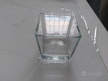 Vaso decorativo quadrato in vetro doppio trasparente nuovo vendo per inutilizzo. Adatto per piante orchidee candele e decorazioni varie. Misure 13x13x13 cm
