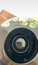 Elegante vaso ornamentale in ceramica, il pezzo presenta un raffinato decoro floreale e scene galanti in stile classico su sfondo nero. Ottime condizioni estetiche, non presenta sbeccature o crepe visibili come in foto. Il brand è sconosciuto