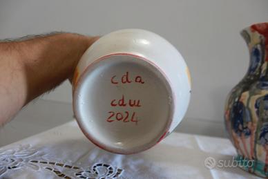 Vaso decorato a mano decò ceramica di Albisola unico.