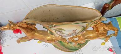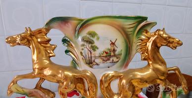 Coppia di vasi portafiori in ceramica decorata a lustro "Cavalli rampanti"