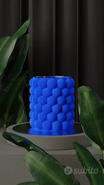 Vaso decorativo stampato in 3D con un design moderno e geometrico, caratterizzato da una superficie ricca di dettagli che crea un gioco di luci e ombre davvero unico. Le forme morbide e tridimensionali gli conferiscono un effetto scultoreo che spicca in qualsiasi ambiente, dal salotto alla scrivania.