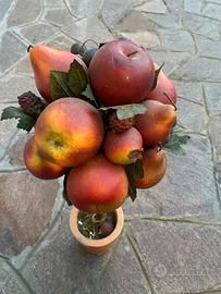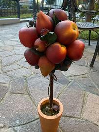 Alberello con frutta, mele, pere, uva e piccole foglie, altezza centimetri 60