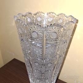Vendo bellissimo vaso in cristallo, altezza 35 cm, con diametro alla bocca di 16 cm, dallo stile raffinato e luminoso, perfetto per arredare salotti, ingressi o come centrotavola.