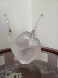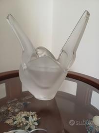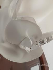 Vaso Lalique modello "Sylvie" in cristallo satinato e trasparente, raffigurante due colombe intrecciate.