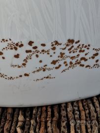 Vaso in porcellana Rosentahl della linea Studio Linie. ( La linea Studio Linie e stata una linea di prestigio creata da Design di fama internazionale). Porcellana di qualita' tedesca, che evidenzia un bellissimo gioco di bianco opaco e lucido (nella parte superiore per evidenziare i filamenti di erba). Fine decoro oro. Il vaso e della meta' del secolo scorso. Presenta piccoli segni del tempo come da foto. Alto 24,5 cm. E Largo 22 cm. Profondo 10 cm. Pesa 1,4 Kg.