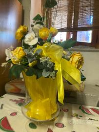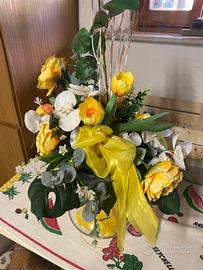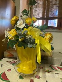 Bellissimo Vaso in vetro con fiori di tessuto di alta qualita’