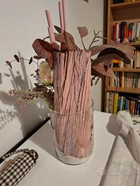 vendo bellissimo vaso in vetro con pietanze, sabbia e bellissimi fiori artificiali. scarpellini garden