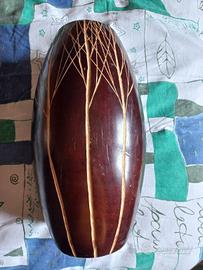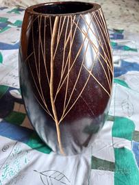 Vaso di legno ben spessorato, stile minimal classico con disegno incavato/inciso.