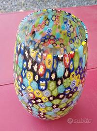 Vendo coloratissimo vaso in vetro soffiato, preziosa lavorazione a murrina, originale di Murano, perfetto, come nuovo. Altezza cm 20. Peso kg 1,3.