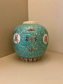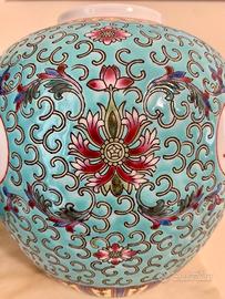 Nel complesso, il vaso appare come un oggetto decorativo tradizionale cinese, caratterizzato da colori vivaci e simbolismo augurale.