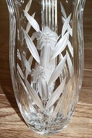 Privato vende a scelta n.2 raffinati oggetti in vetro molto pesante e spesso di alta qualità, abbinati, con la stessa lavorazione pregiata intagliata a mano a decori floreali (fiori e grandi foglie) intervallati da scanalature verticali, perfetti impeccabili come nuovi, come foto: