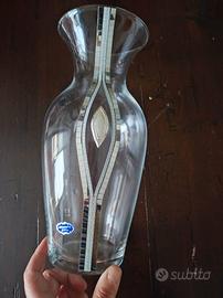 Vaso di vetro con decorazioni in argento 925. Designer studio 8, made in Italy. Nuovo.