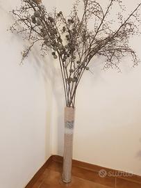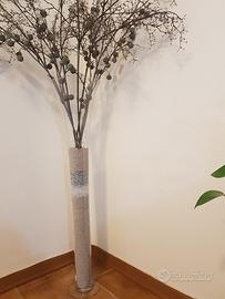vaso di vetro con bacche finte per un angolo da arredo,altezza vaso 1 metro.