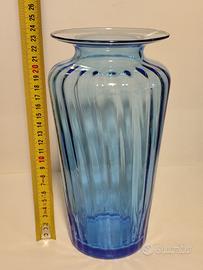 Elegante vaso di vetro azzurro con nervature verticali Dimensioni: altezza 23 centimetri diametro dell’imboccatura 6 centimetri Vendo a 44 euro