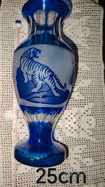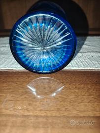 Raro e bellissimo vaso in cristallo blu cobalto con una raffinata lavorazione molata e incisa a mano