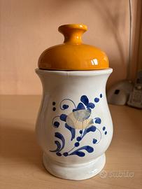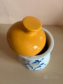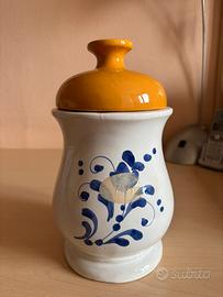 Vaso dipinto in blu con tappo giallo