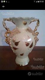 Vendo antico vaso in ceramica con decori dorati