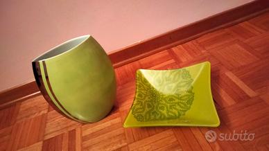 Vaso e piatto in ceramica di colore verde coordinati, molto belli, in ottime condizioni, firmati Claraluna. un marchio di qualità e di garanzia.