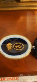 Coppia di oggetti , vaso e portagioie in porcellana Limoges colore blu profondo vintage anni '70.