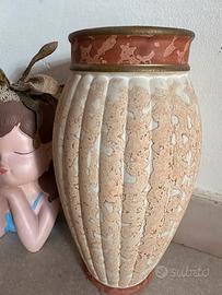 Elegante vaso decorativo, caratterizzato da una finitura effetto marmo nei toni del beige/crema con dettagli marrone/terracotta sul bordo e sulla base. Il design presenta una superficie con rilievi verticali, che dona movimento e lo rende perfetto come complemento d’arredo per casa (salotto, ingresso, camera). Ideale sia come vaso ornamentale che per fiori secchi. Dettagli • Materiale: ceramica • Colore: beige/crema effetto marmo con dettagli marroni • Design: con rilievi verticali • Utilizzo: decorativo / per fiori secchi #Vaso #ArredamentoCasa #HomeDecor #Ceramica #Decorazione #StileClassico