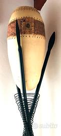 Vaso etnico con supporto in ferro battuto formato da tre lance, altezza cm 182