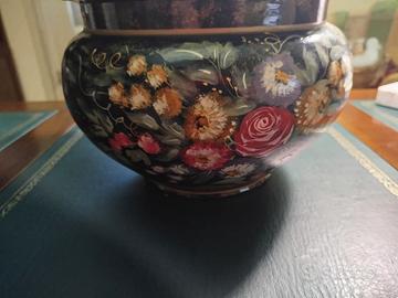 Bellissimo vaso fioriera decorativo dipinto a mano, si tratta di un oggetto da collezione o d'antiquariato. altezza 21 cm larghezza foro 23 cm