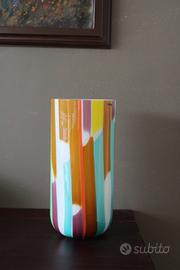 Vaso in vetro soffiato con decoro di canne policrone . Ø 14.5 H 30