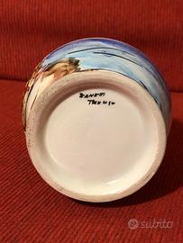 Ceramista attivo a Treviso a partire dalla fine degli anni Venti. Nella prima metà degli anni Trenta apre una collaborazione con la manifattura ceramica "La Freccia" di Tarcisio Tosin. Negli anni del secondo dopoguerra torna a Treviso dove produce ceramiche d'arredo in un proprio laboratorio. Il vaso è in ottime condizioni senza sbeccature. Diametro superiore 3,5 cm, quello inferiore 6,5 cm, al centro nella parte bombata 10 cm, altezza 22,5 cm. Firmato Zanetti Treviso.