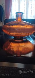 vaso decorativo in vetro riciclato di grandi dimensioni, caratterizzato da una forma sferica schiacciata e un collo stretto. Materiale: vetro riciclato al 100%, un materiale comune per questo tipo di oggettistica artigianale. design è liscio ma spesso presenta leggere irregolarità tipiche della lavorazione manuale o del vetro soffiato. La forma è spesso descritta come "a boccia" o "basso". Colore: La tonalità ambrata o "ambra topazio" è una delle più diffuse per questi vasi in vetro riciclato