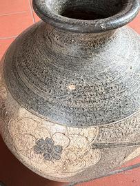 Vendo elegante vaso in terracotta decorata, perfetto per arredare spazi interni o esterni. I toni del grigio con disegni floreali lo rendono molto raffinato, ideale sia da lasciare vuoto che da decorare con fiori o piante.