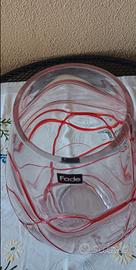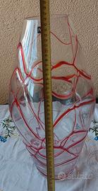 Vaso grande,in vetro spesso,trasparente con strisce rosse in rilievo. Molto bello e robusto. Peso: 2.900 kg. Marchio: FADE SOLO CONSEGNA A MANO. NON SPEDISCO