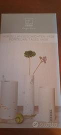Vaso in ceramica bianca della Räder (Danimarca) con 2 rami sporgenti e piccole decorazioni dorate (foglie che cadono)