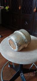vaso in ceramica color oro lavorato all'esterno,all'interno color verde, diametro cm 12, altezza cm 11