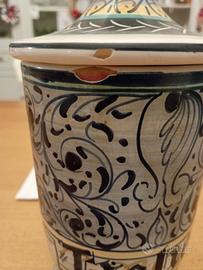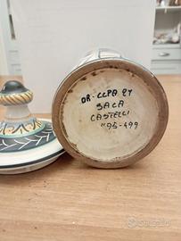 Vaso Orcio Ancora Brocca arredamento cucina. Stile farmacia Decorato a mano., Con scritta " Tiglio" Con coperchio Leggera seccature come da foto Bellissimo Altezza 25 cm Firmato Sala Castelli '95 - 499 Ritiro solo a mano