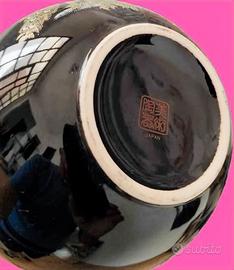 Bellissimo vaso in ceramica di fattura giapponese, decorato con un pavone e fiori.