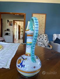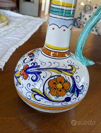 Elegante brocca in ceramica artistica di Deruta, firmata “Augusta Deruta” sul fondo.