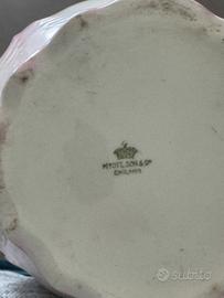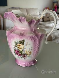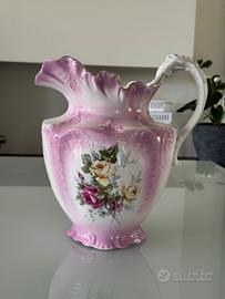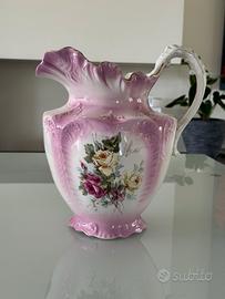 Brocca antica inglese Myott, Son & Co – primi ‘900 In ceramica inglese originale della manifattura Myott, Son & Co, databile tra il 1900 e il 1920. Caratteristiche: •Decoro floreale romantico •sfumatura rosa •Bordo lavorato con bordo dorato •Marchio originale presente sul fondo Arredo stile shabby chic / vintage •vaso per fiori •pezzo da collezione Condizioni: buone (eventuali piccoli segni del tempo coerenti con l’età) Prezzo trattabile