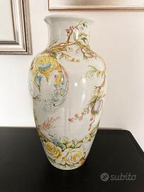 Grande vaso con decorazione floreale firmato Leda Zannoni Altezza vaso: 43cm Anni 80. Condizioni ottime, nessun graffio o segno di usura. Ritiro a mano a Casale Monferrato