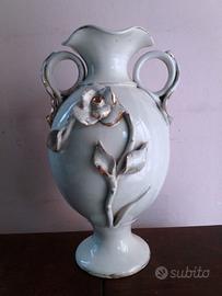 Vaso vintage Ceramica bianca rifinita in oro Con rosa in rilievo