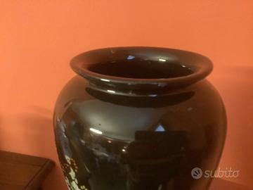 Bellissimo vaso con disegno orientale nero e oro, alto 26cm e largo 17 cm In ceramica con lieve imperfezione nel bordo superiore