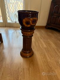 Vaso in ceramica Scheurich West Germany, modello 706, con decorazioni a girasole e smalto marrone lucido, montato su un piedistallo scanalato abbinato.