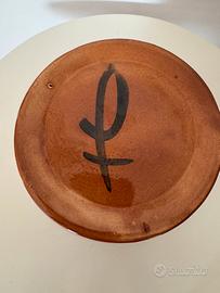 Manifattura: Pezzo artigianale con marchio dipinto a mano sotto la base (sigla "P" stilizzata).