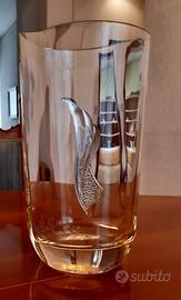 Stupendo vaso da fiori in cristallo con decoro di una foglia d'argento e marchiato con punzone. Alto cm. 30.