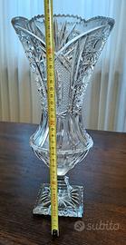 Splendido vaso porta fiori vintage in cristallo di Boemia con lavorazione scanalata e motivi circolari, anni '50, in ottimo stato di conservazione.