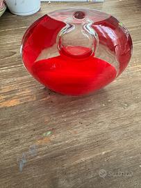 Vendo elegante vaso in cristallo firmato Scherzer 1880 Crystal, dal design contemporaneo e molto scenografico. Colore rosso intenso con parte superiore trasparente, forma arrotondata e foro centrale ideale per composizioni floreali Dimensioni indicative: (aggiungile se vuoi) Prezzo: 70 Ritiro a mano / spedizione disponibile.
